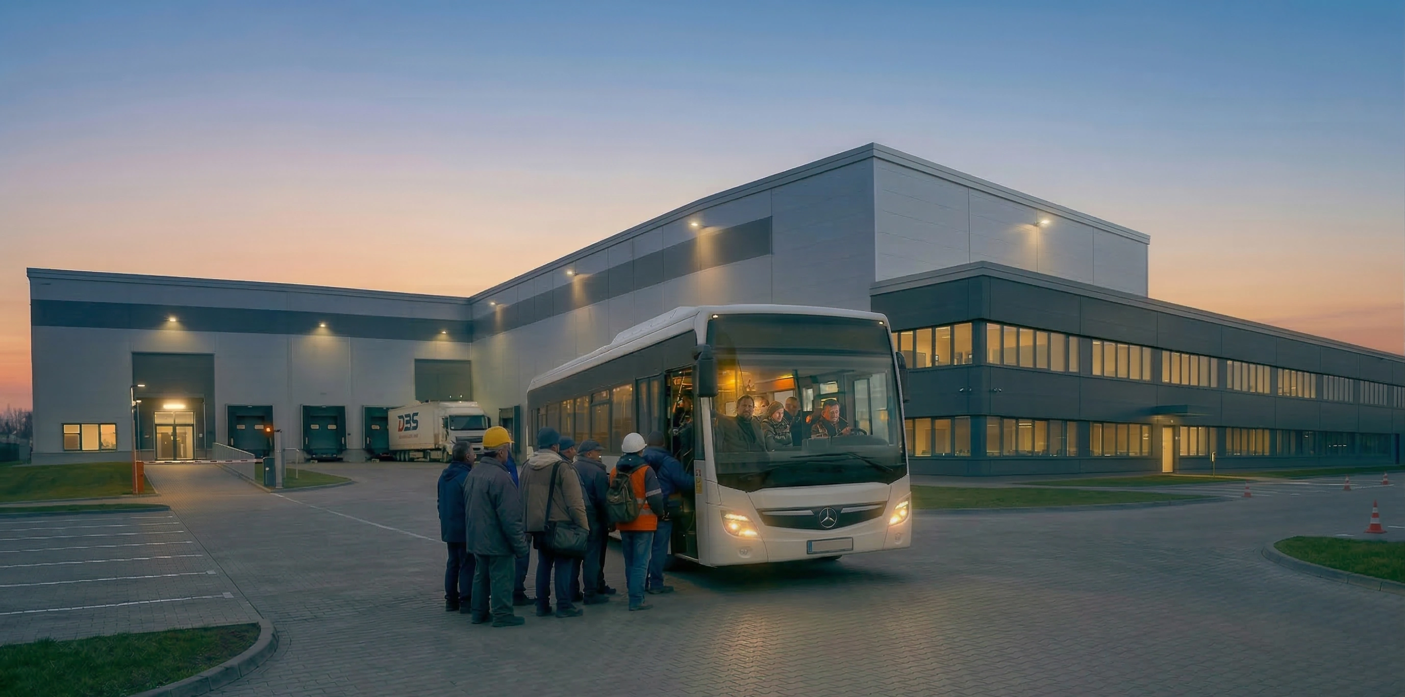 - Stuprocentowa punktualność: Wiemy, że opóźnienie autokaru oznacza przestój na linii produkcyjnej. Nasi kierowcy zawsze docierają na czas, płynnie obsługując systemy 2- i 3-zmianowe.